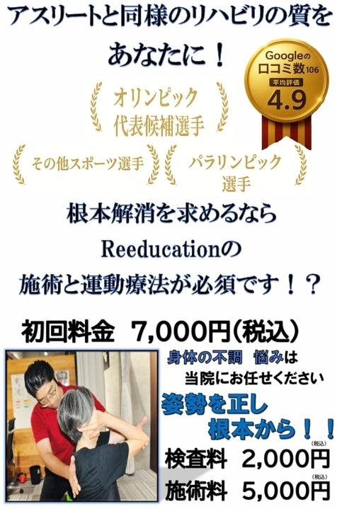 そのために、Reeducationは施術と運動療法を組み合わせています。